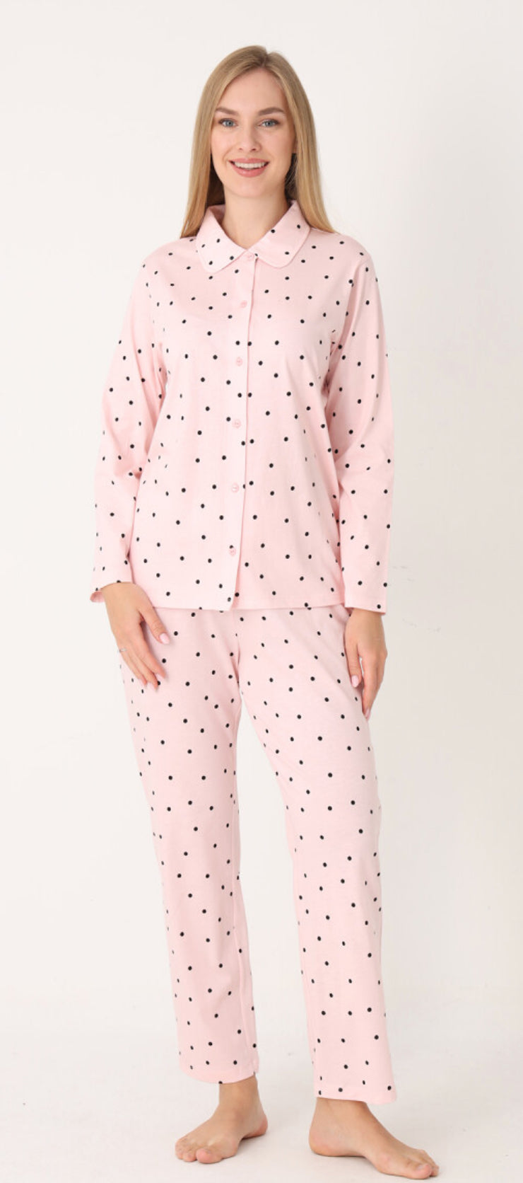 Zgjedhja perfekte për netë të qeta dhe komode! Pizhame pambuku me pika, super të buta, të ajrosshme dhe të rehatshme për çdo stinë. Pambuku i pastër i jep lëkurës një ndjesi natyrale dhe të freskët, ndërsa dizajni me pika shton ëmbëlsi dhe stil.