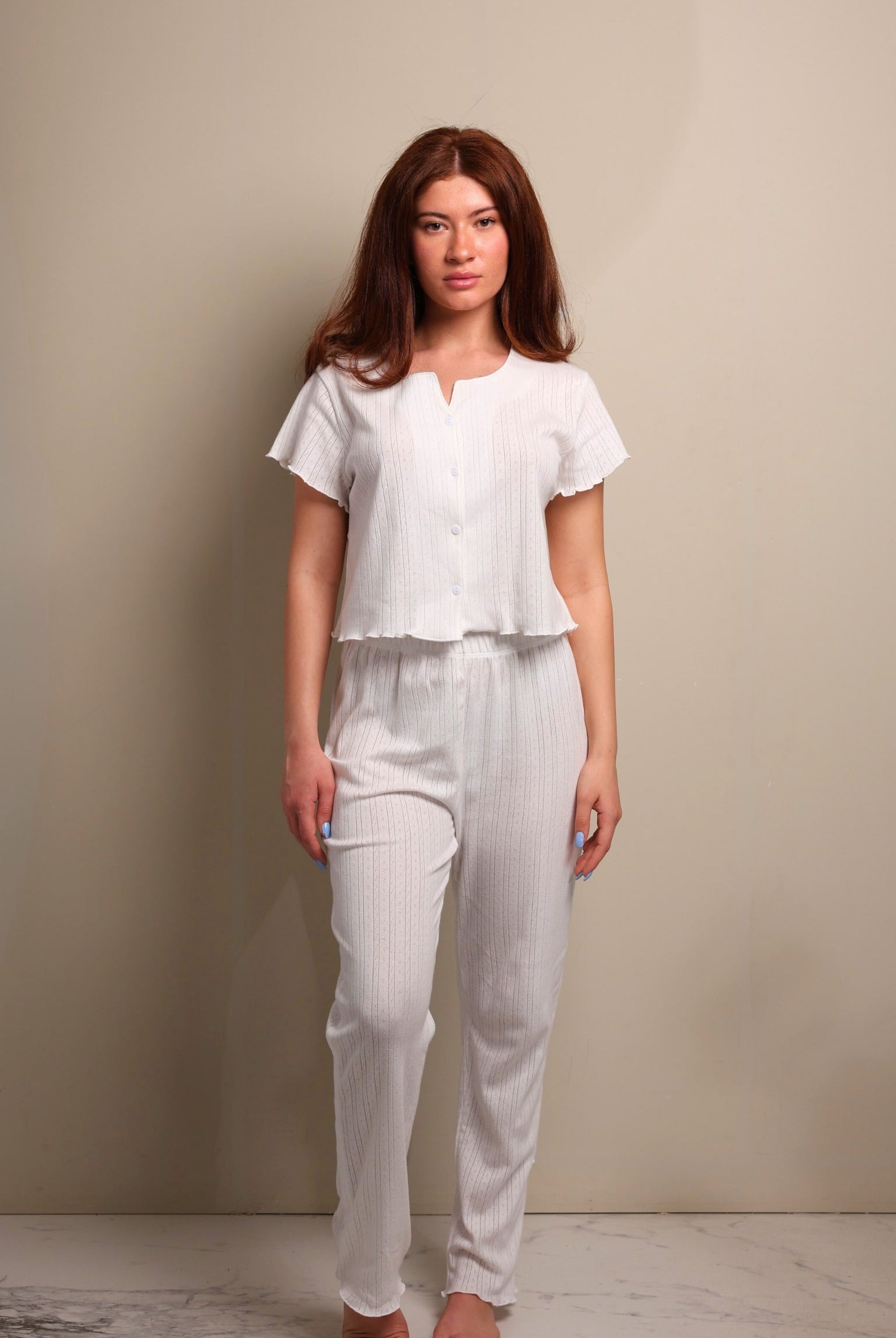 Përqafoni butësinë e koleksionit tonë të ri të pizhameve Pointelle, perfekte për çdo natë.